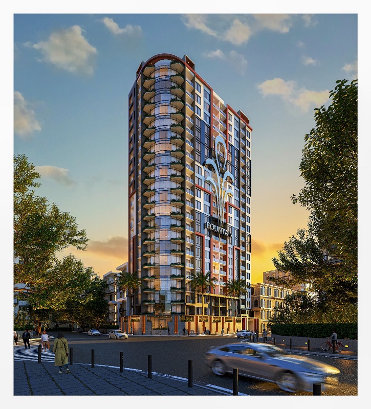 Fountain Residency features elegantly designed 1 and 2-bedroom apartments with modern Turkish-inspired finishes, open-plan layouts, and lifestyle-oriented amenities.